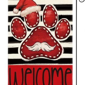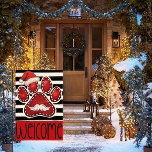 Santa Paw Print Christmas Garden Flag 12x18 Inches