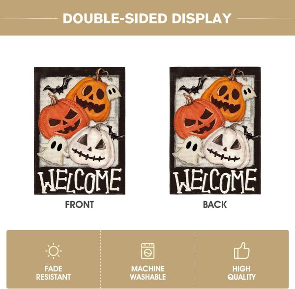 Halloween Garden Flag 12x18 Inches, Jack-o'-lantern Ghost Pumpkins